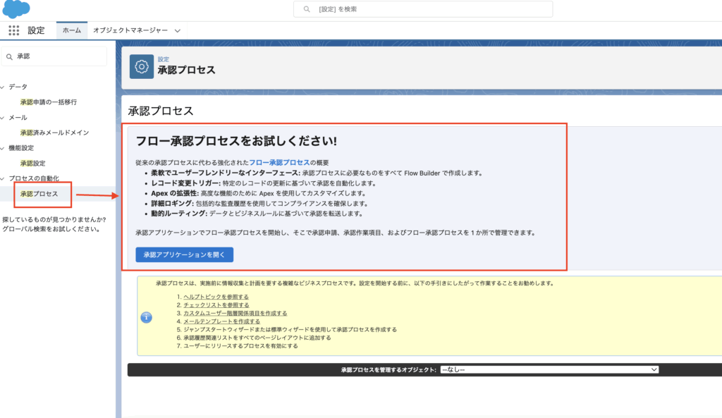 承認プロセスの作成画面に下記のような画面が表示されるようになりました。