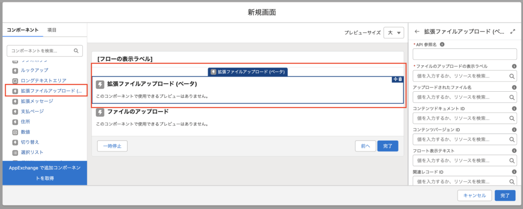 - 画面フロー:拡張ファイルアップロードがベータ版で新登場