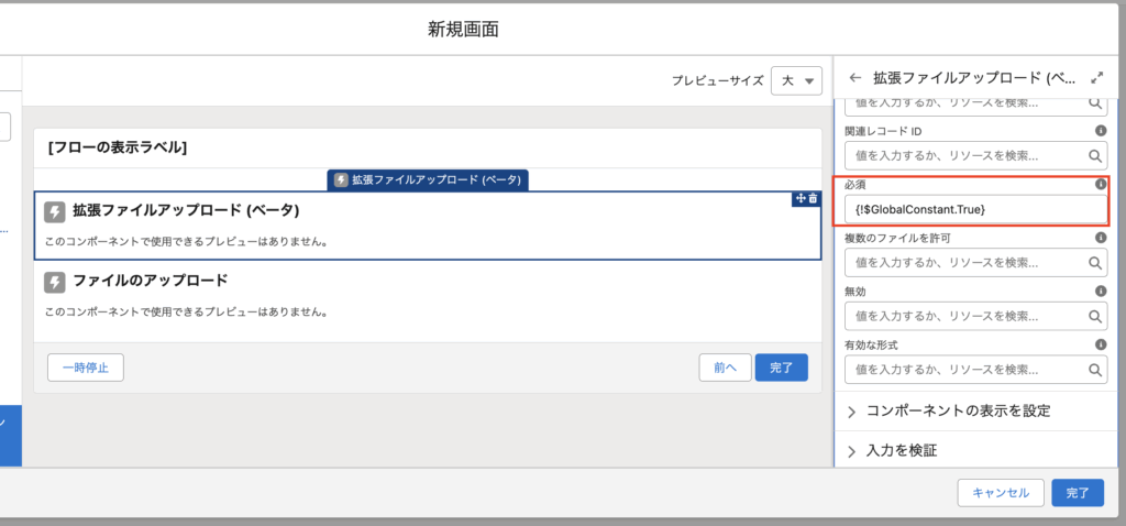 画面フローの画面要素で使えるコンポーネントには以前から「ファイルのアップロード」がありました。