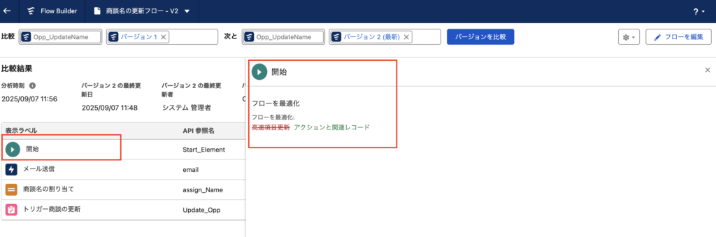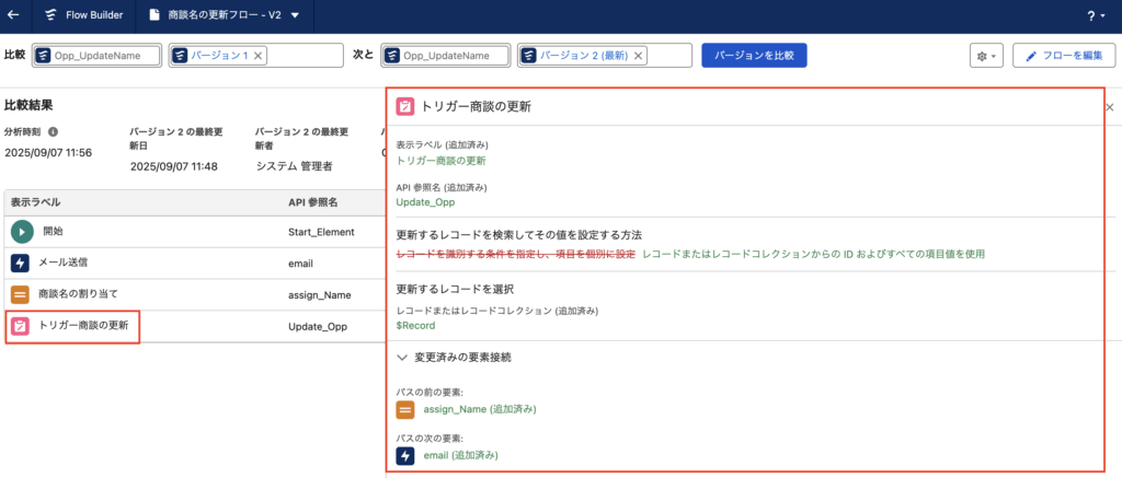 レコードトリガーフローをバージョン間で比較してみる